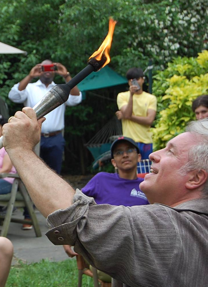 He has spent the last 27 years as Creative Content Manager/Editor at McCann Erickson Worldwide where he has garnered awards from SXSW, The Andys, Webbys, Reggies, as well as Bronze and Gold Lions from Cannes. But he never stopped doing magic and putting fire in his mouth. Over the last few decades, billing himself as the “Magician With Issues”, he has designed political theme related shows. For instance, one show was for the Unicef TAP program and was all about water. Another, The Cop Show, is designed to get teens and Police officers to connect with each other. He does about 30 shows a year and mostly does not burn himself.