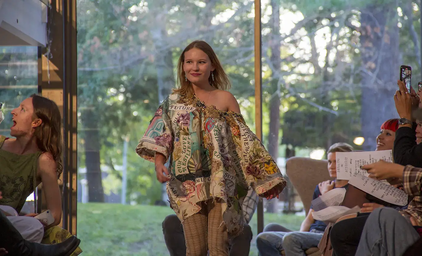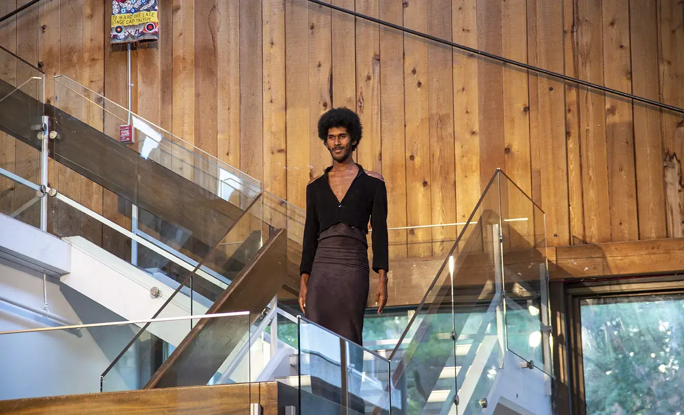 Michael Sylvan Robinson '89 introducing the Dressing the Activist fashion show event