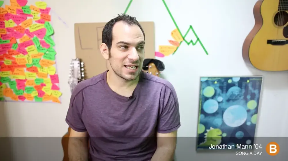 What began as a side project became a career for Jonathan Mann '04. The famous Song A Day Man has composed for CNN, New York magazine, Anderson Cooper, tons and tons of conferences and corporate events—and, of course, for his YouTube channel which now boosts 37,008 subscribers and 20,521,002 views since 2009. In October, he invited the magazine into his home to talk about making a song a day for the last several years.