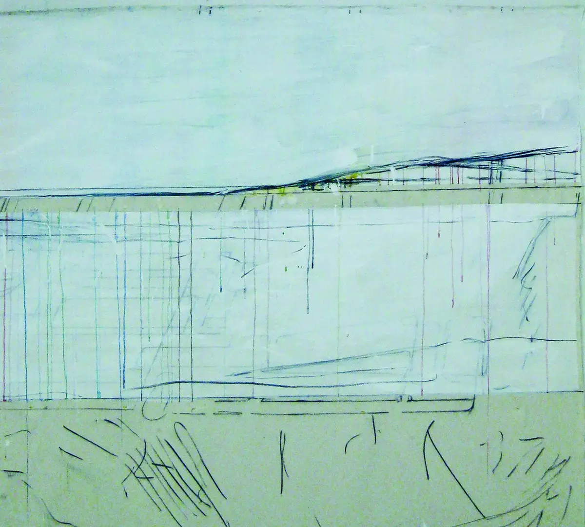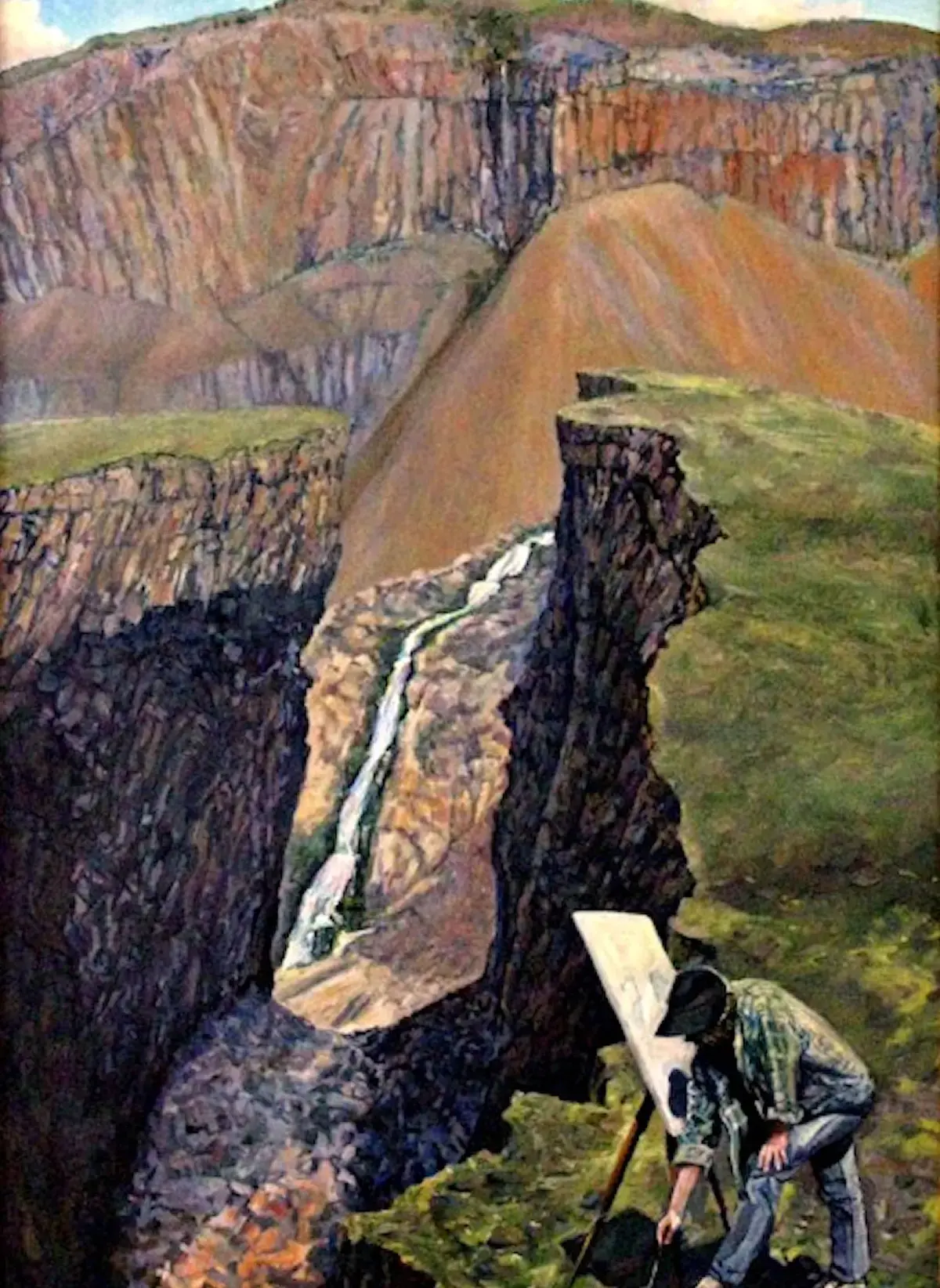 I hiked into Ancient Lakes near Wenatchee, WA and I painted this crevasse through which I could see a waterfall on-site in shrub steppe (Center).