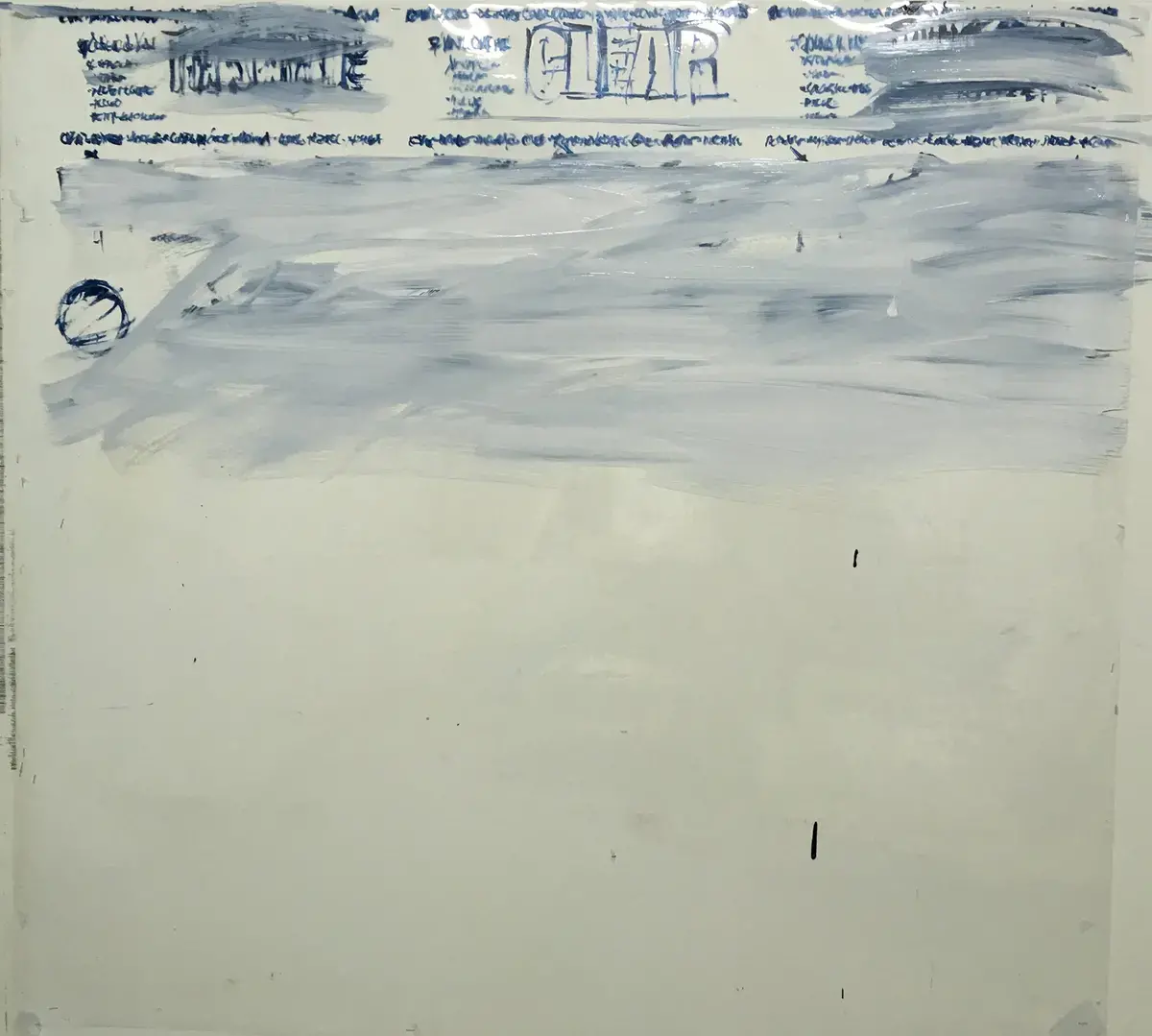 Left: Heron, 2014, acrylic pencil, charcoal on canvas. 72" x 72" Center: Fast Food Paradox, 2018, pencil on paper. 4" x 5" Right: It’s Clear, 2018, oil on vinyl yardage and wrapping. 48" x 48"