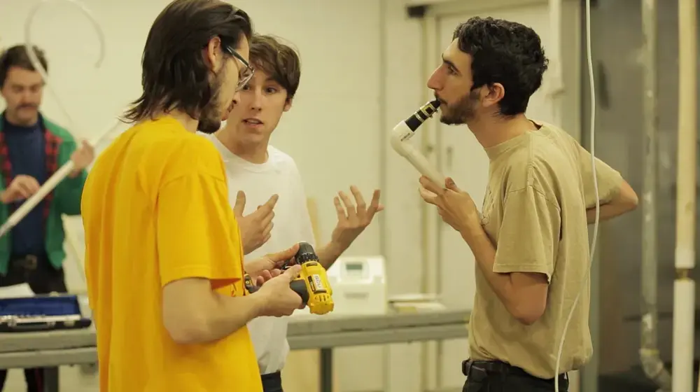 In a modern revival of Bennington’s historical practice of requiring musicians to be able to craft their own instruments, Nick Brooke’s “Instrument Building” class encourages both traditional know-how and unconventional innovation. The class includes the opportunity to participate in projects such as an Iron Chef-inspired, one hour long instrument building challenge.