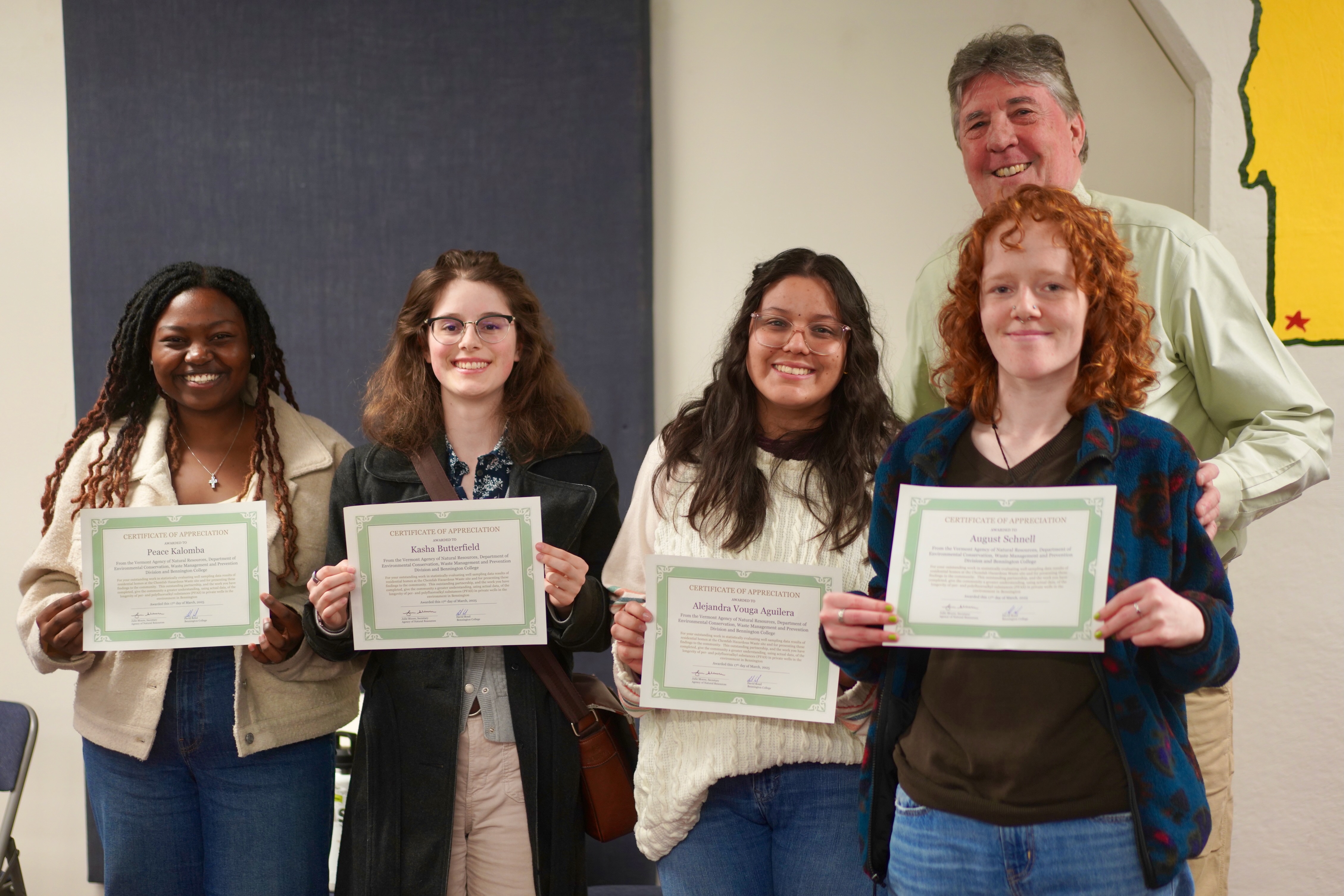 Commissioner Schuren, Chuck Schwer of the Division of Waste Management and Prevention, and Richard Spiese, hazardous sites manager for the Vermont Agency of Natural Resources and point person for the efforts in Bennington, North Bennington, and Shaftsbury, praised work of the College, and emphasized how helpful it is to the state to have a local partner working on the issue.