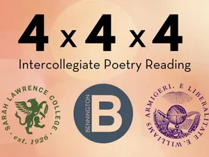 OPEN TO THE PUBLIC | Four Bennington undergraduate poetry students will read together with four undergrad poets from Sarah Lawrence College and four undergrad poets from Williams College.