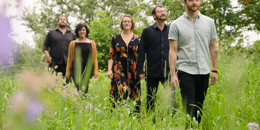 This performance features Sophie Michaux (mezzo-soprano), Adam Simon (baritone, plucked strings), Lysander Jaffe (tenor, violin), Lexi Ugelow (alto, percussion), Sora Harris-Vincent (alto), and Daniel Fridley (bass, wind instruments).