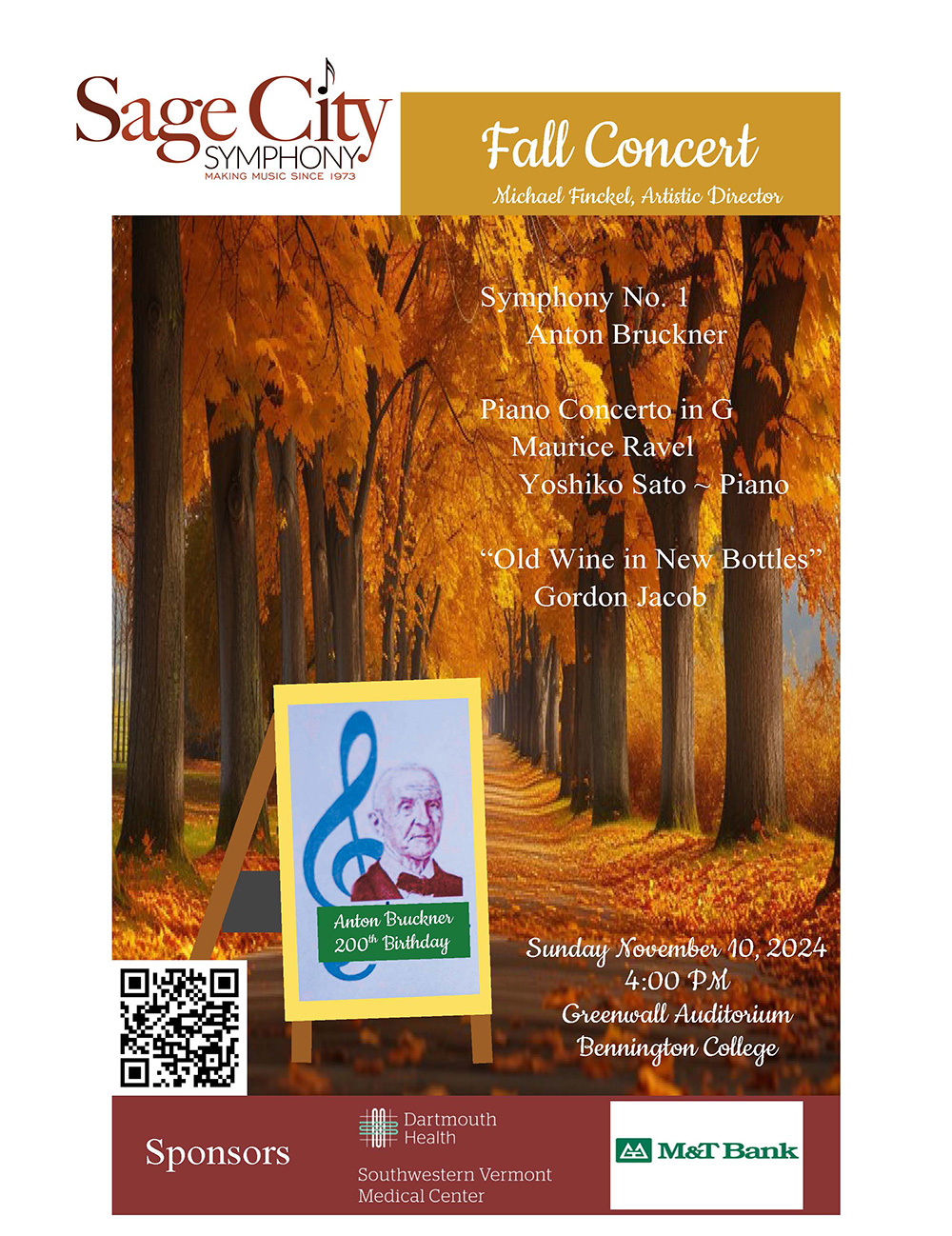 OPEN TO THE PUBLIC | With Michael Finckel, Conductor: Bruckner Symphony #1; Ravel Piano Concerto in G with Yoshiko Sato; Gordon Jacob “Old Wine in New Bottles.”