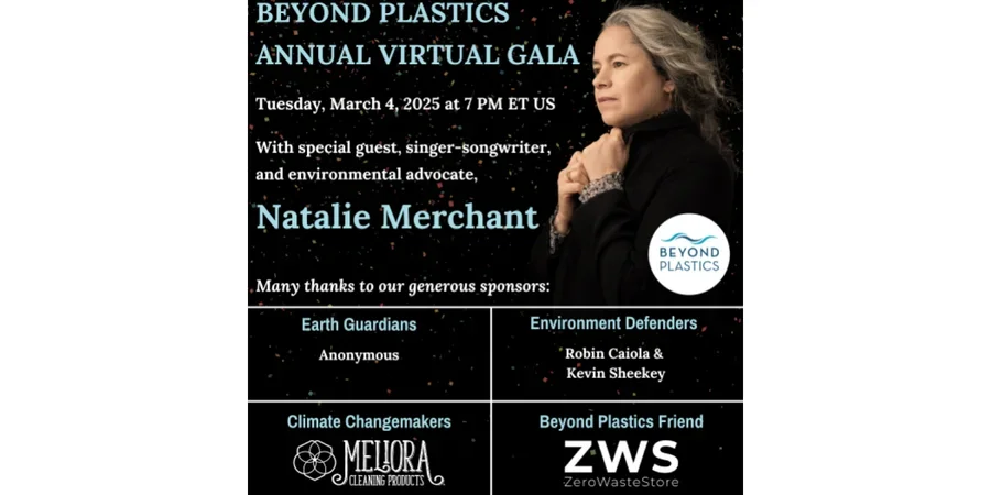 OPEN TO THE PUBLIC | Please join Beyond Plastics on Tuesday, March 4, 2025 for an inspiring virtual fundraising gala to support our work to end plastic pollution with special guest, the amazing singer-songwriter, and environmental advocate, Natalie Merchant!