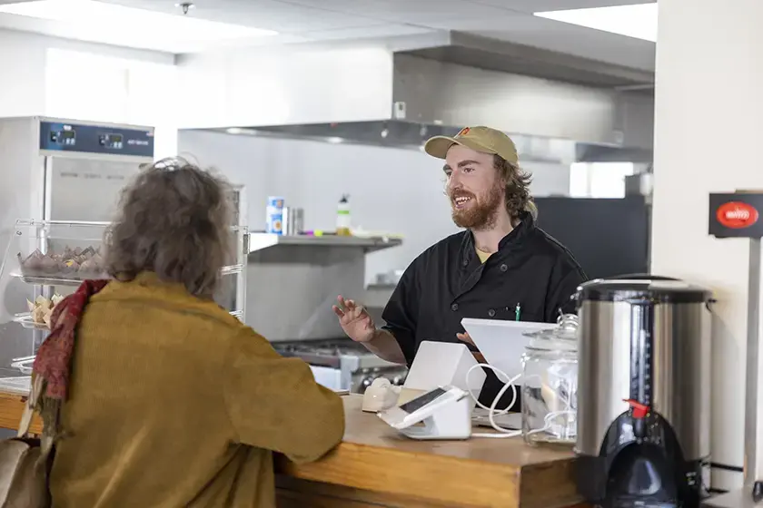 Visitors can enjoy coffee at one of the large wooden tables. Free wi-fi, charging stations, and big windows with a view of Bennington’s iconic White Rocks make the market a place customers can hang out, work remotely, or socialize.