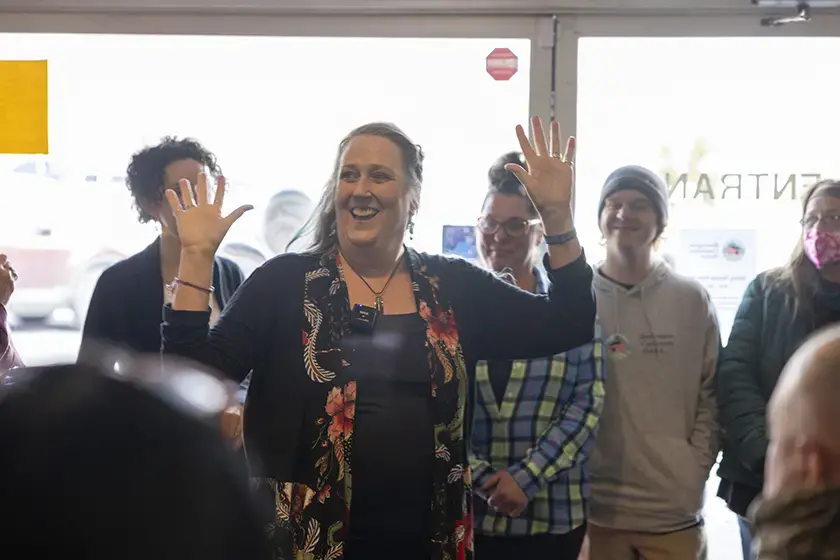 “Seeing the space filled with people but also the shelves and tables… It’s being able to feel the community vibe we were going for,” said Board Chair West. Looking around, she said, “Yes. This is what we were hoping for.”