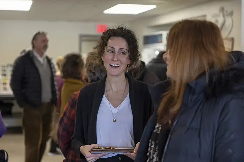 “There were bumps along the road getting the space ready,” said Aila West, Chair of the market board and Associate Director of the Prison Education Initiative at Bennington College. (Amid the noise of the crowd at the opening celebration, West’s answers took on the vibe of a post-game sideline interview with the captain of the winning team.) “But we persevered, and here we are.”
