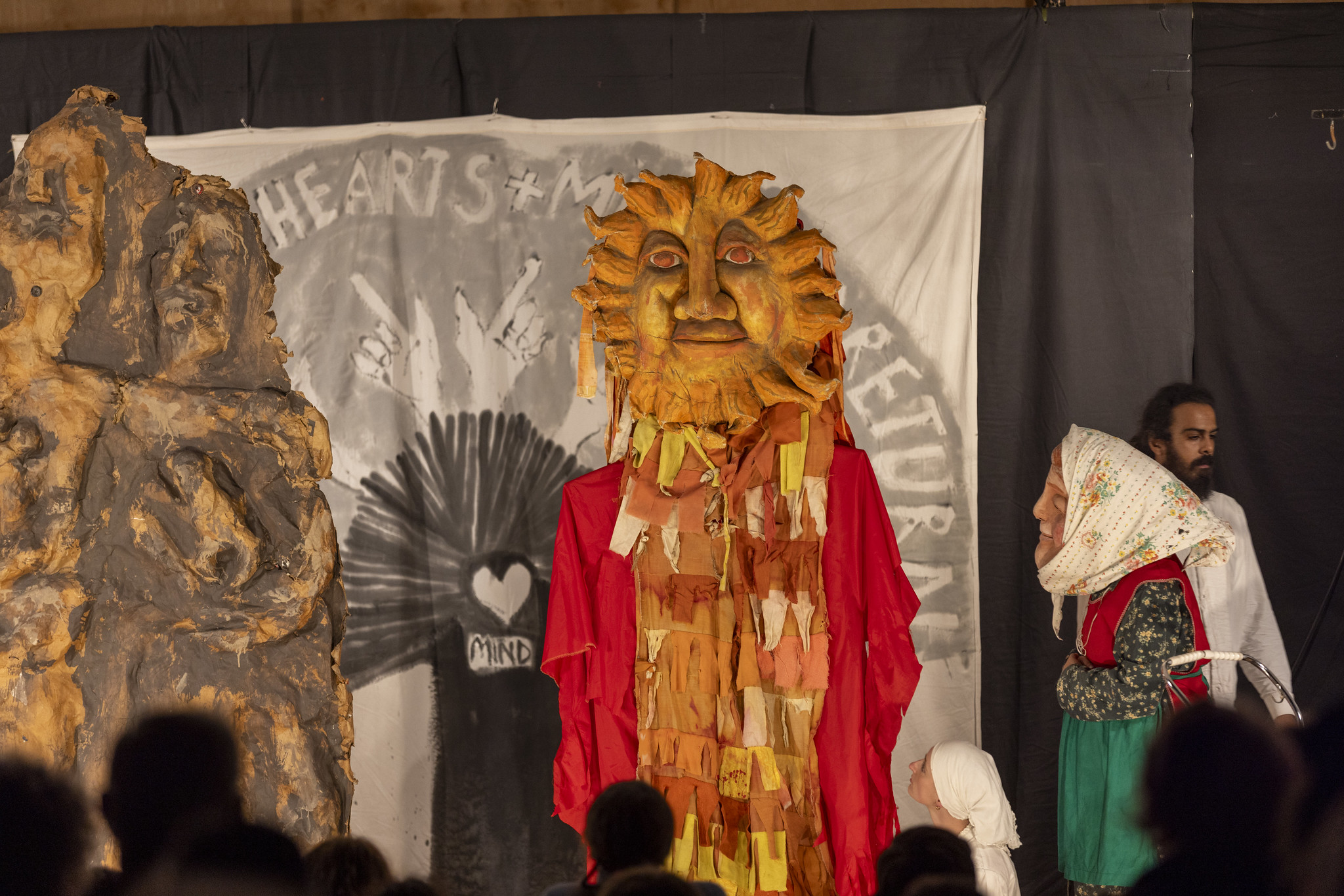 Throughout the 1-hour performance, the audience sat rapt in lessons in the Bread + Puppet worldview, including harsh facts of those imprisoned around the world and the lack of access to food, water, electricity, and medicine among much of the world's population.