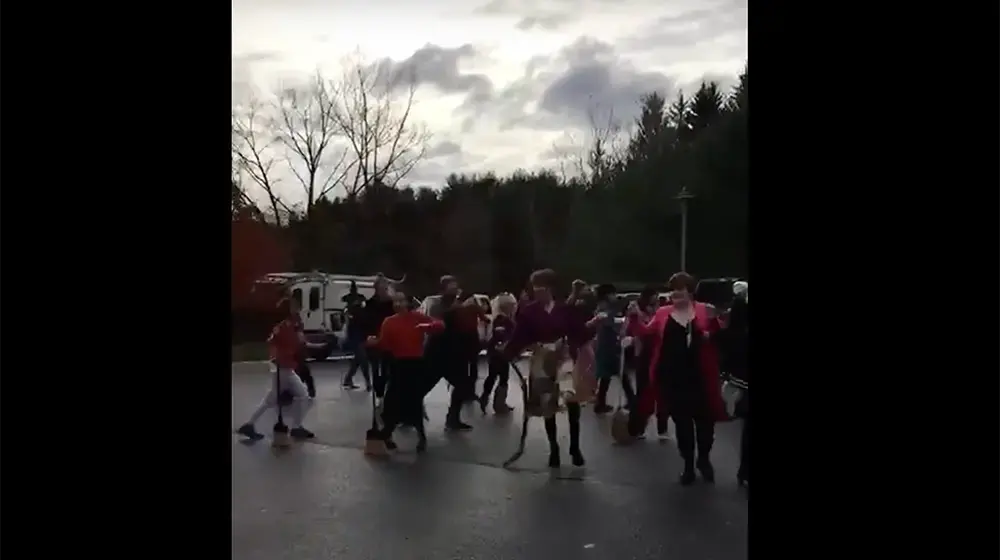 On October 27, students in Kerry Ryer-Parke and John Kirk's Sing course surprised essential staff with a flash mob of "The Broom Dance" by the Wolfshäger Hexenbrut, led by Music Program Coordinator Gina Deibel.