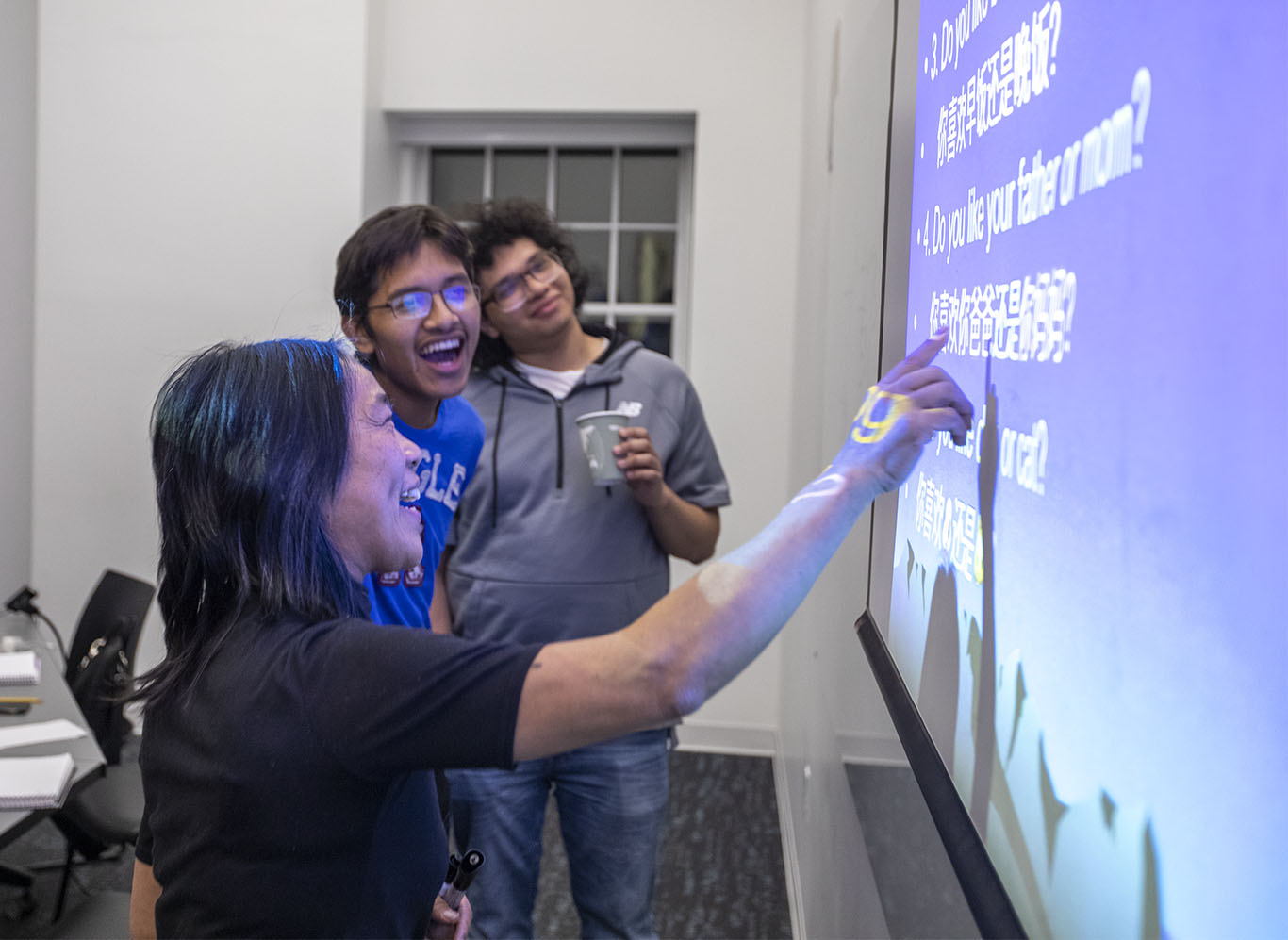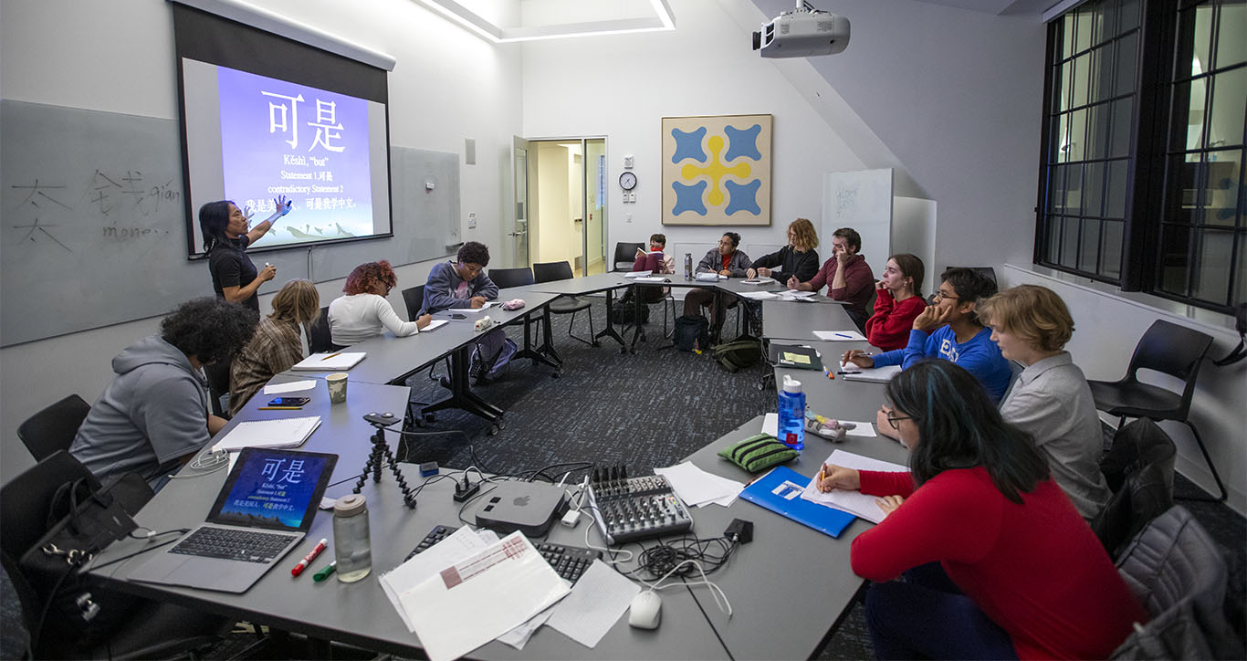 Lin and other language faculty match their students’ abilities, with an understanding of what courses each has taken already, to create exciting new opportunities often based on current events.